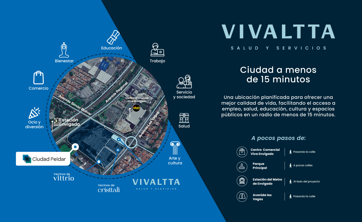 Vivaltta Envigado es un proyecto innovador de consultorios y oficinas ubicado en Ciudad Peldar, Envigado, una zona de alto desarrollo y valorización. Diseñado para profesionales y empresas que buscan un espacio moderno, funcional y estratégicamente conectado, Vivaltta ofrece la oportunidad de invertir en un lugar con excelente proyección.