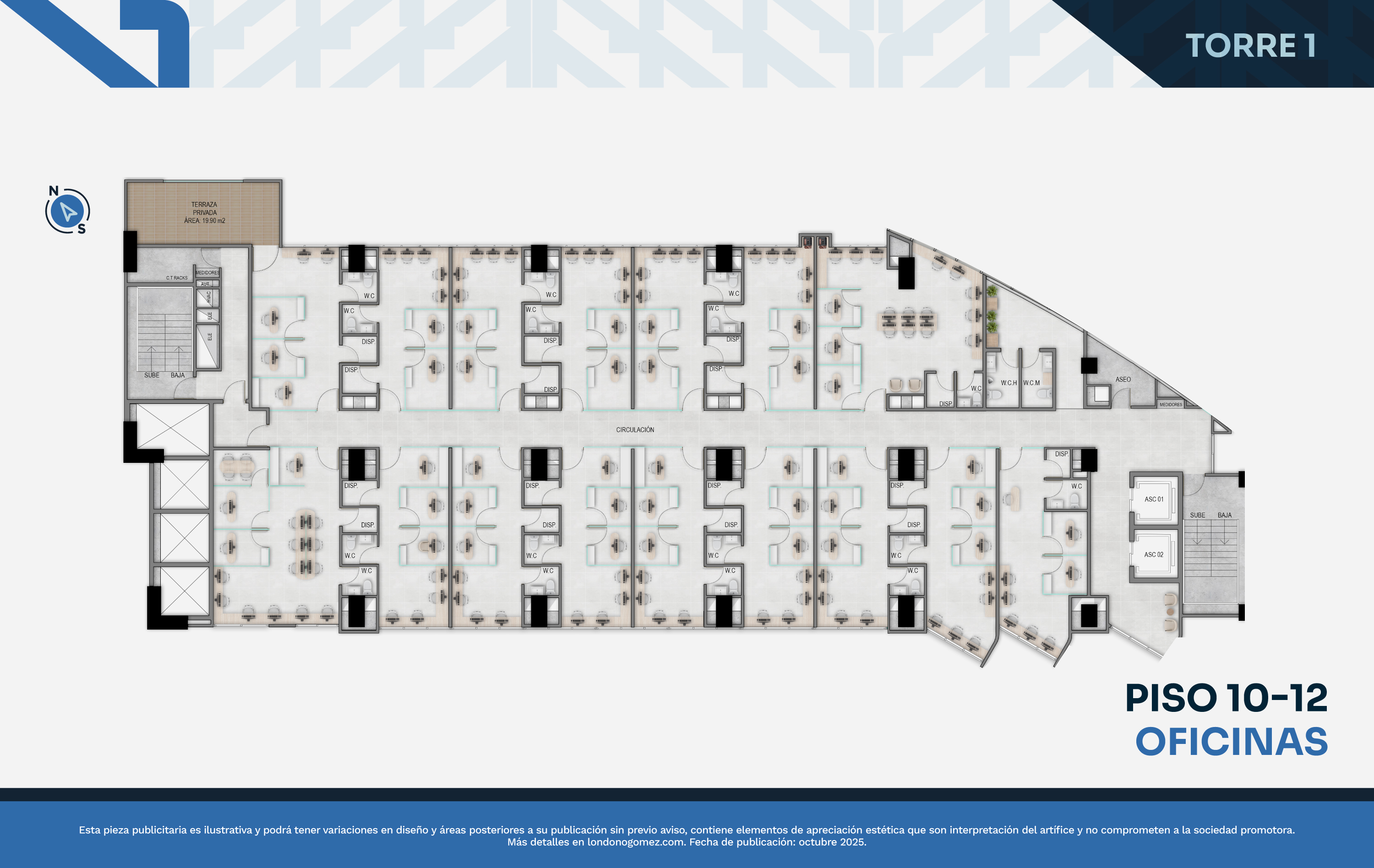 Las oficinas que se encuentran conformadas (divididas) se entregan totalmente terminadas, las áreas abiertas se entregan en obra negra.