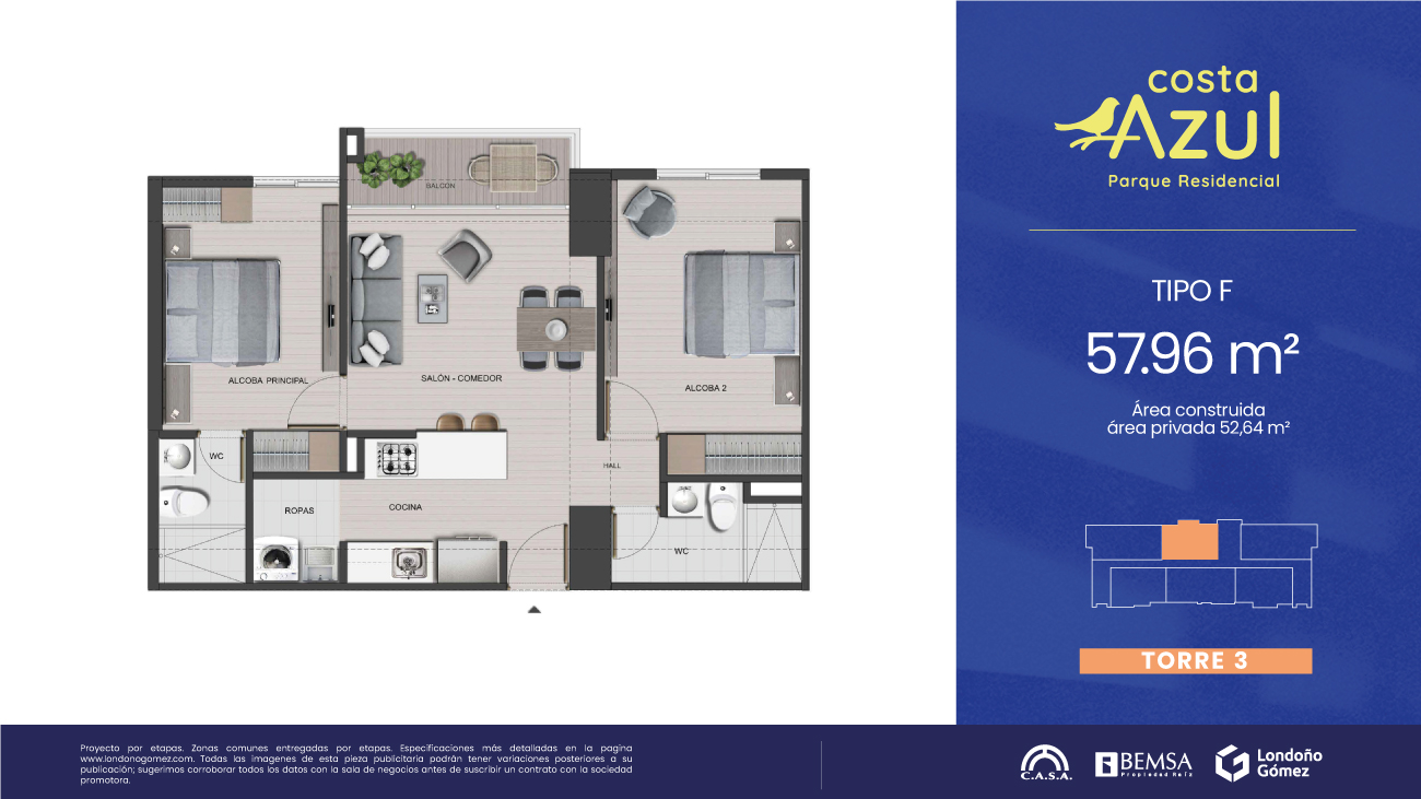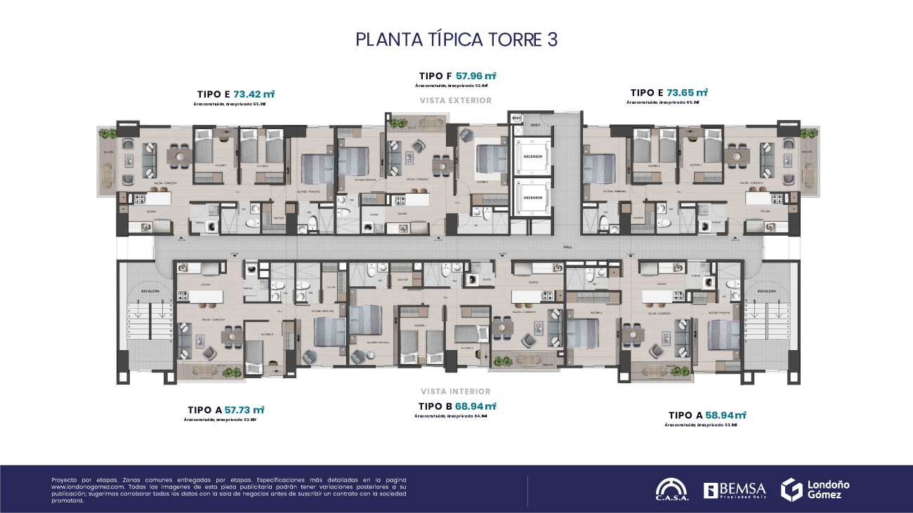 Privada: desde 52.64 m2* hasta 65.31 m2*
