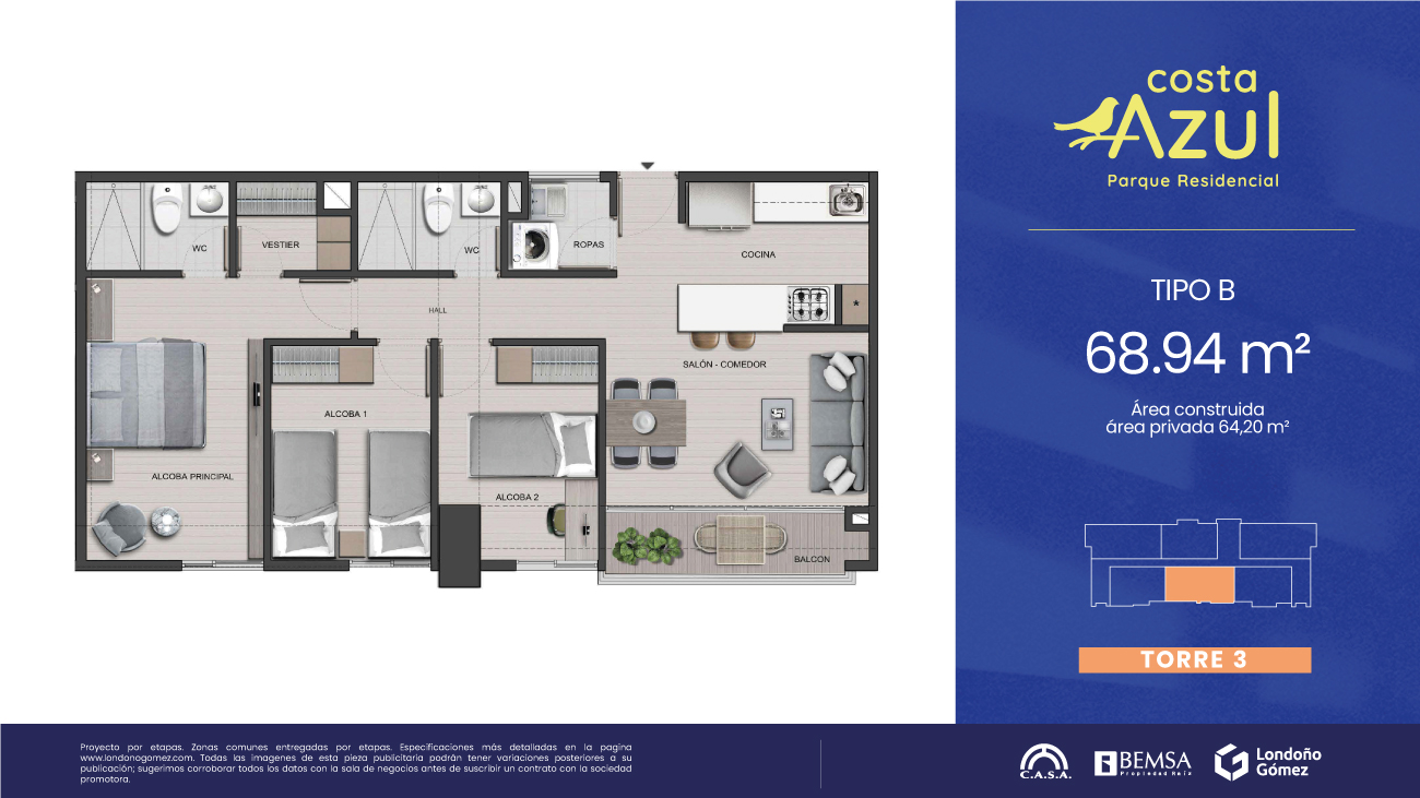 En Costa Azul encontrarás todo lo que necesitas para una vida tranquila y práctica, cerca a comercio, importantes vías de acceso, colegios y universidades.