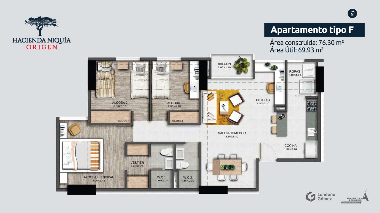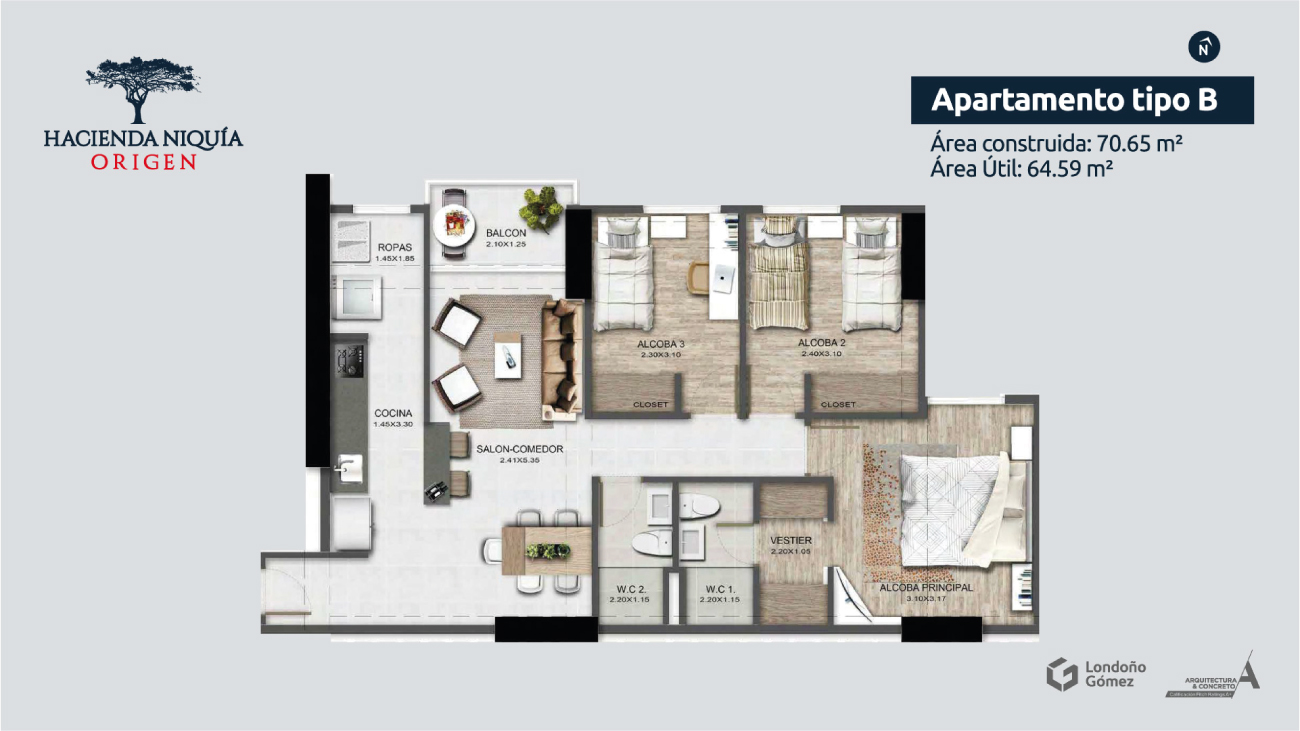 Privada: desde 47.95 m2* hasta 87.36 m2*