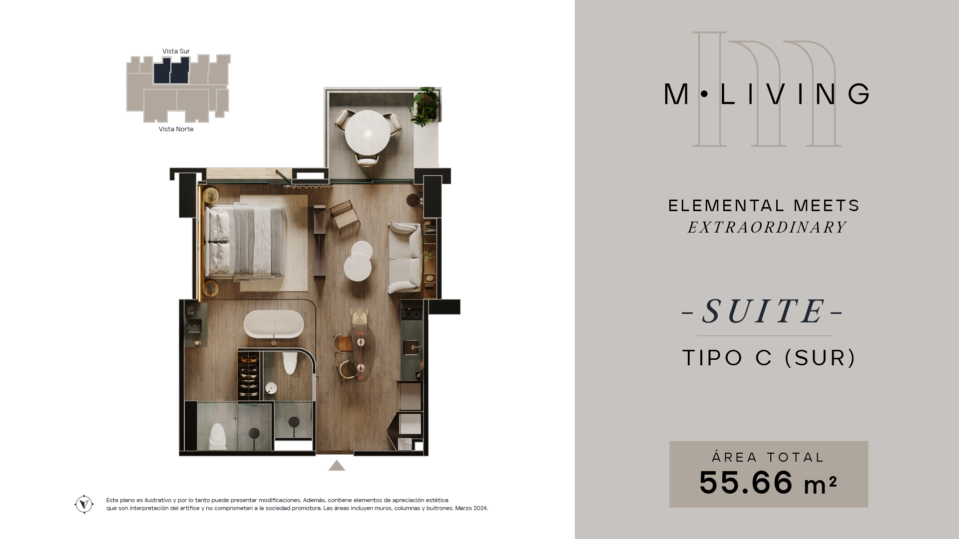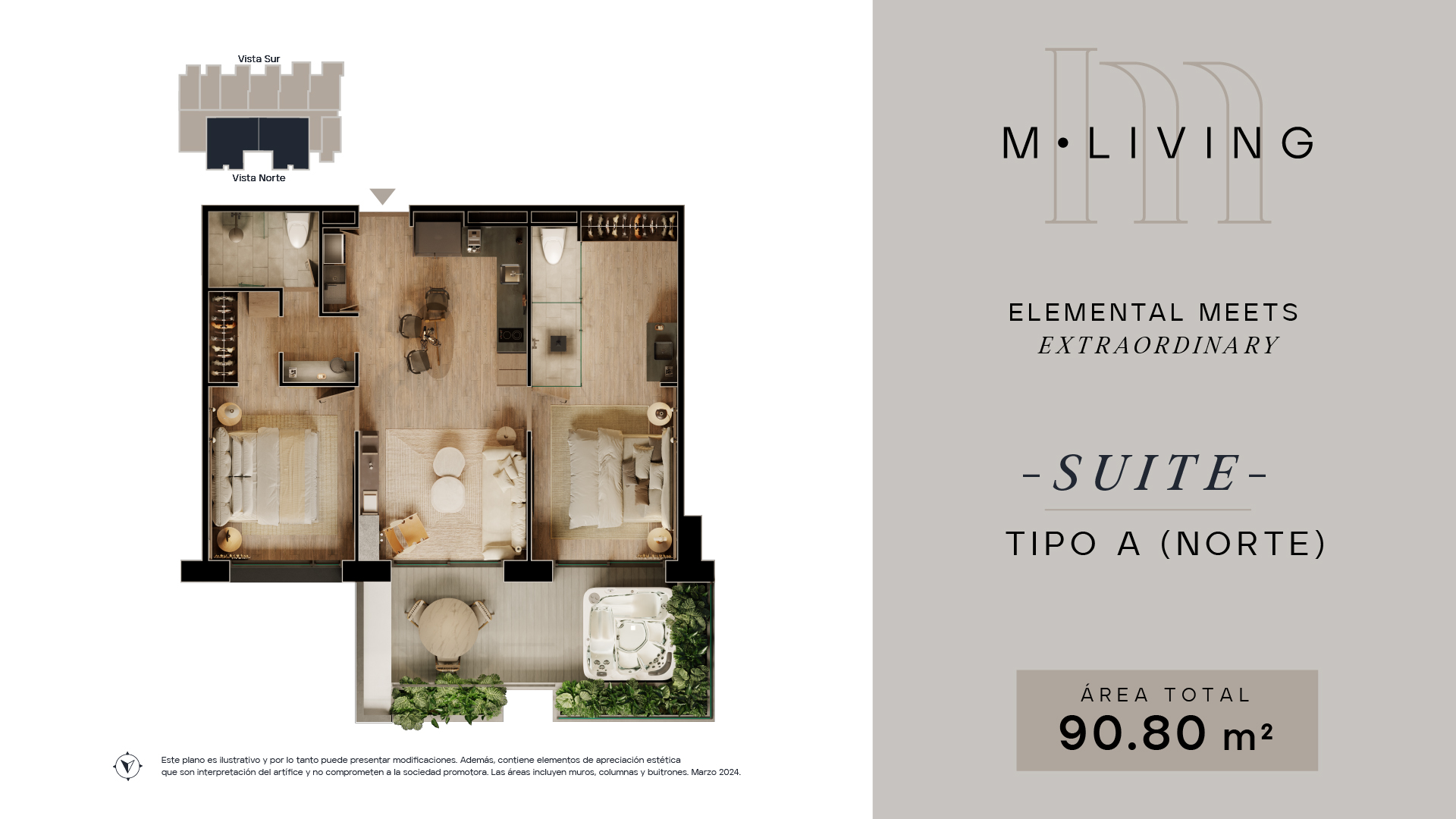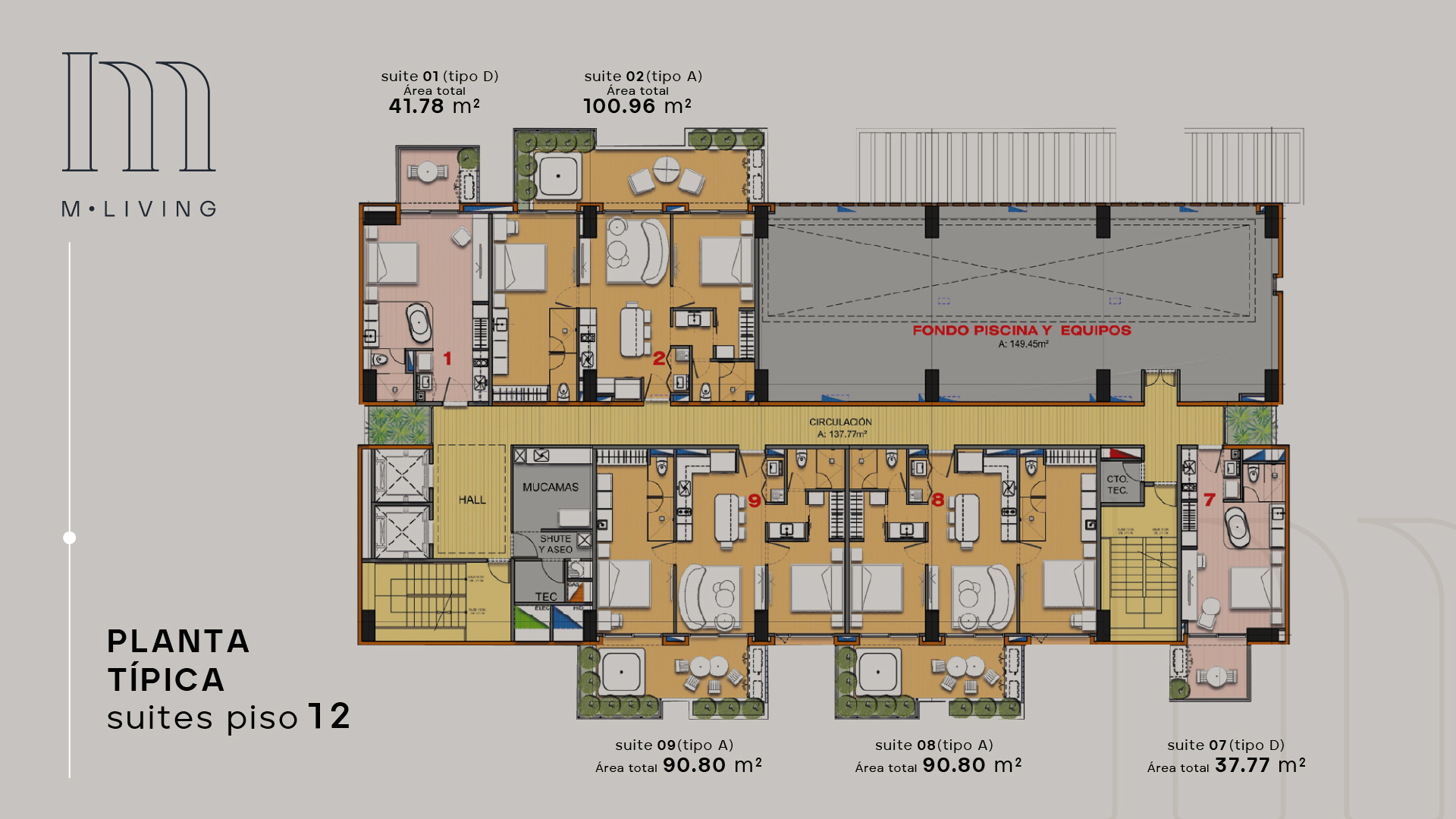 Este proyecto cuenta con 102 suites en una sola torre, con áreas entre 51 y 90 m²* y opciones exclusivas como jacuzzi o bañera. Cada espacio está pensado para brindar comodidad y rentabilidad a quienes invierten en el sector más demandado de la ciudad.