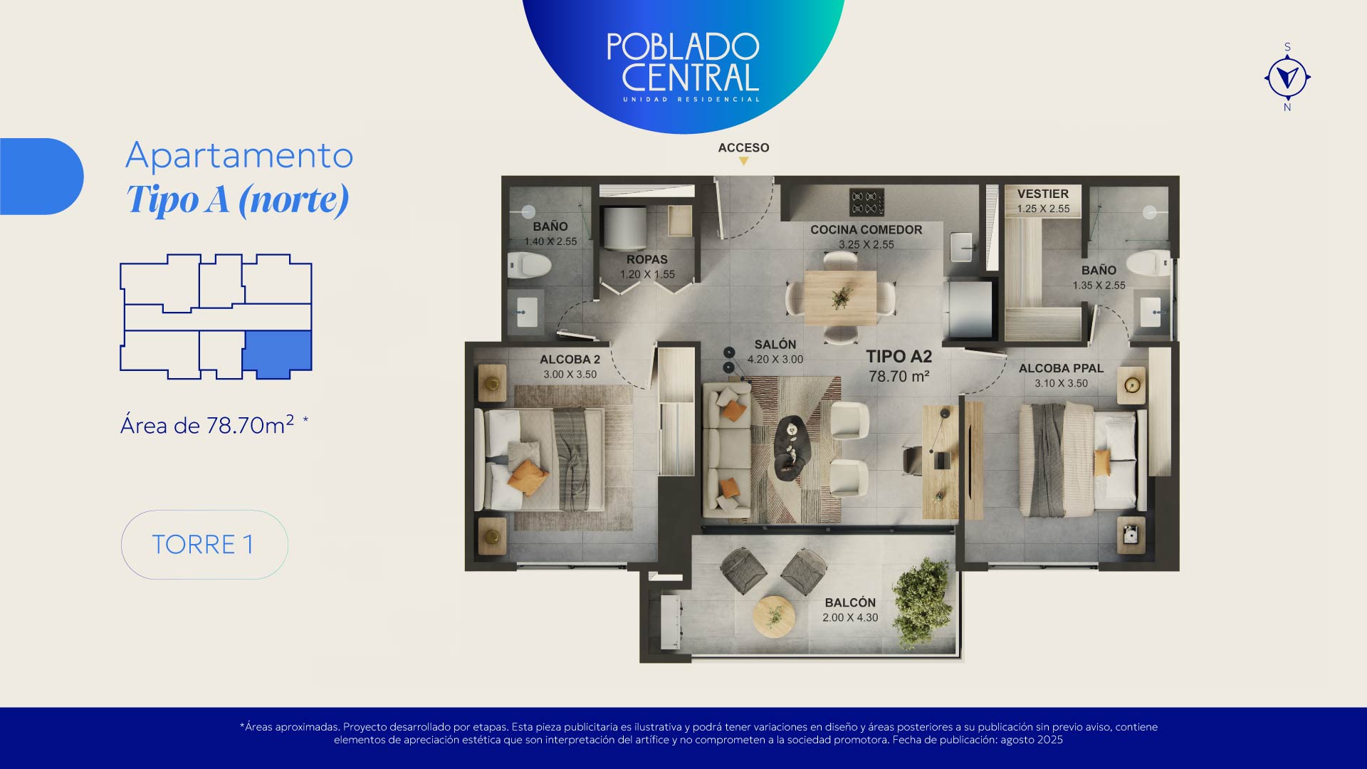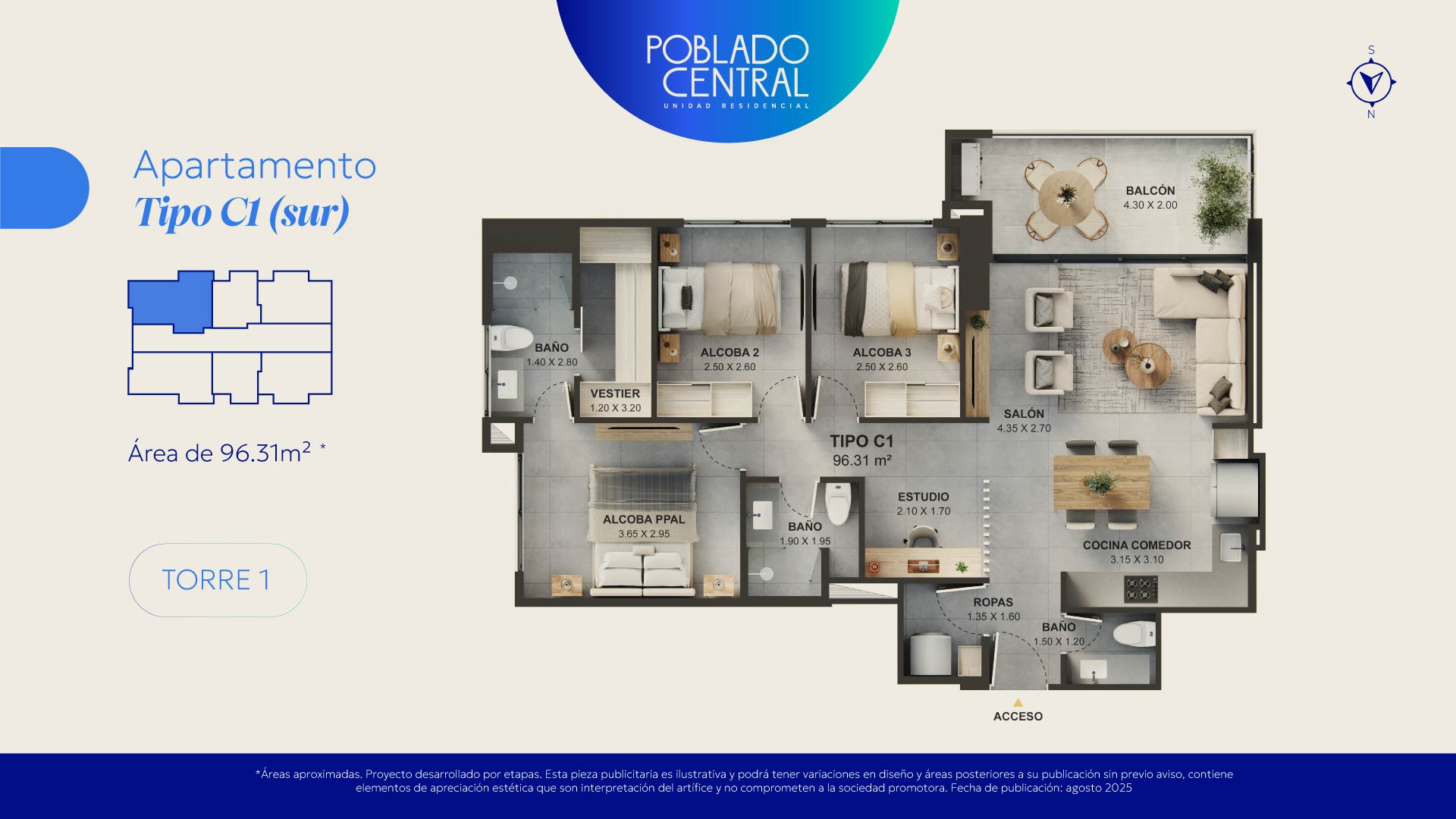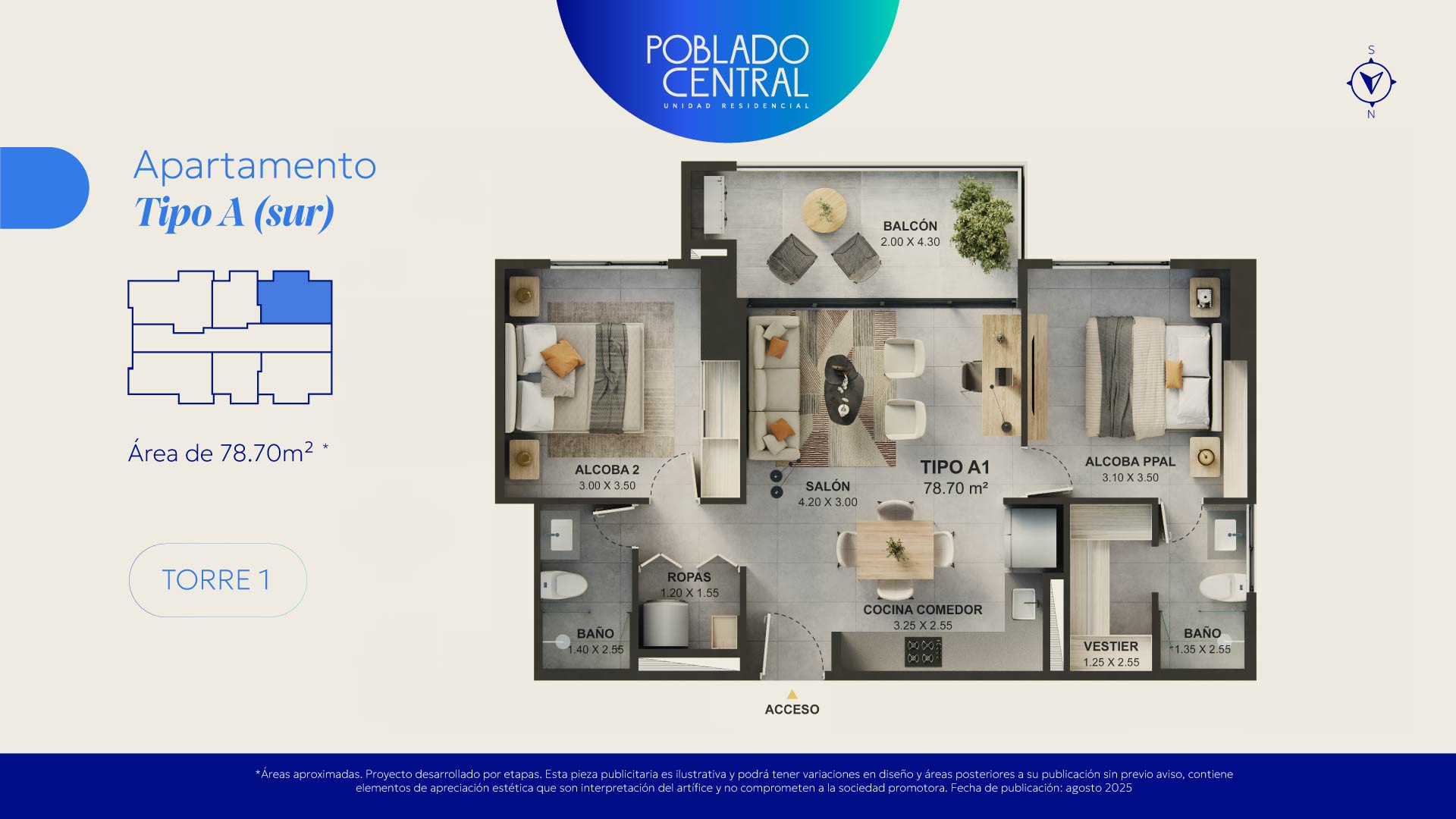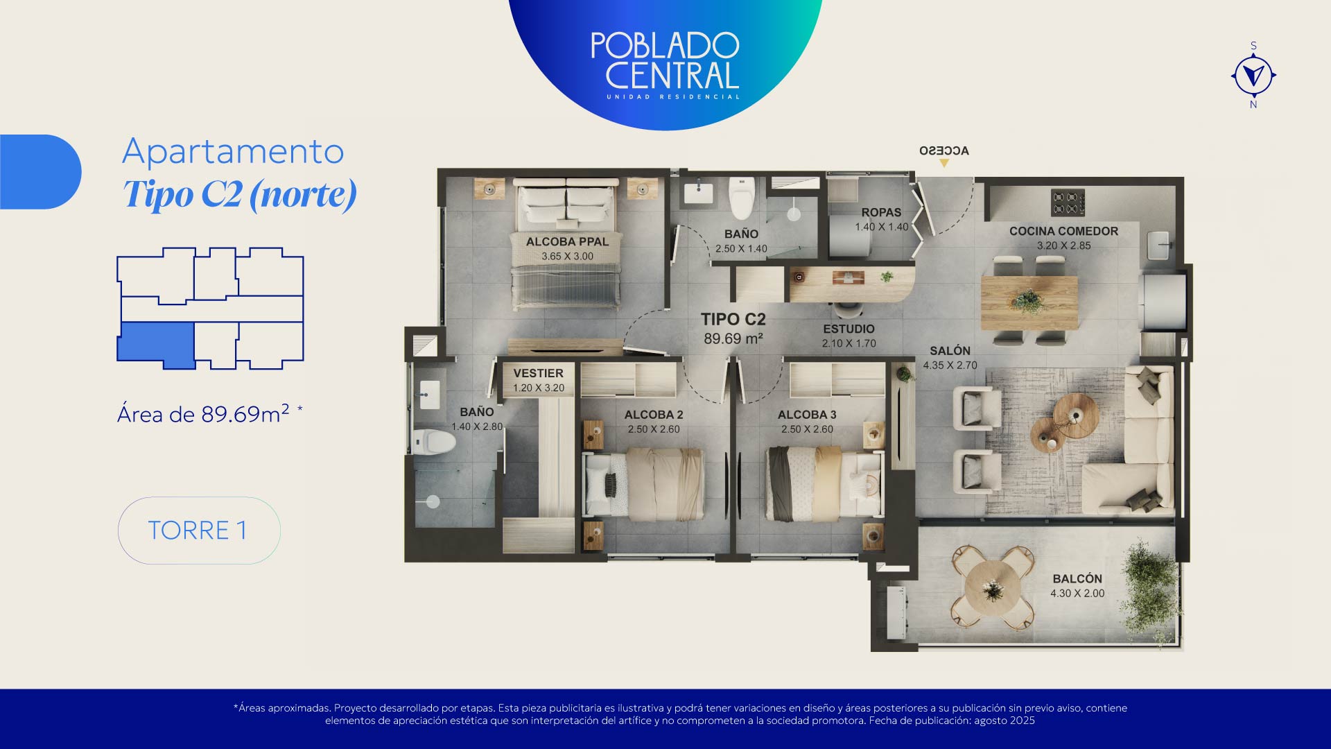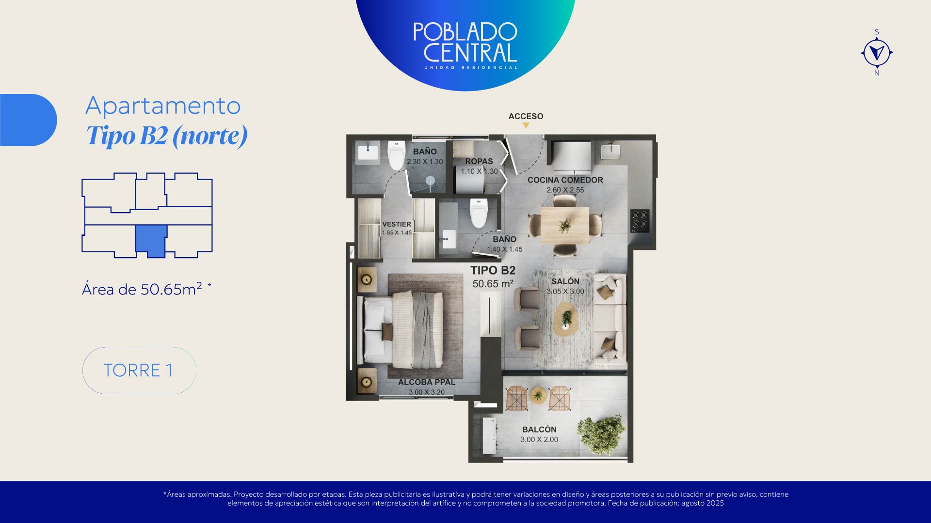 Vivir en Poblado Central significa tener todo a la mano: centros comerciales, universidades, zonas de entretenimiento, restaurantes y vías principales que garantizan facilidad de movilidad y alta valorización.