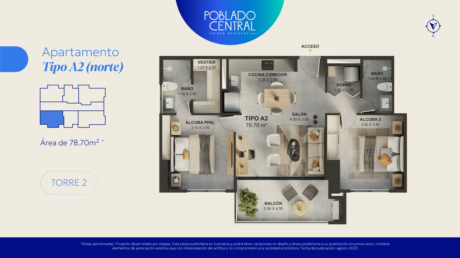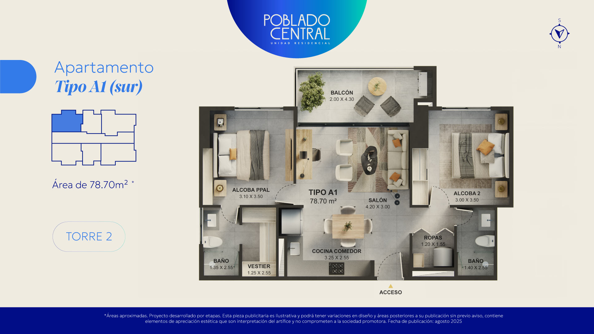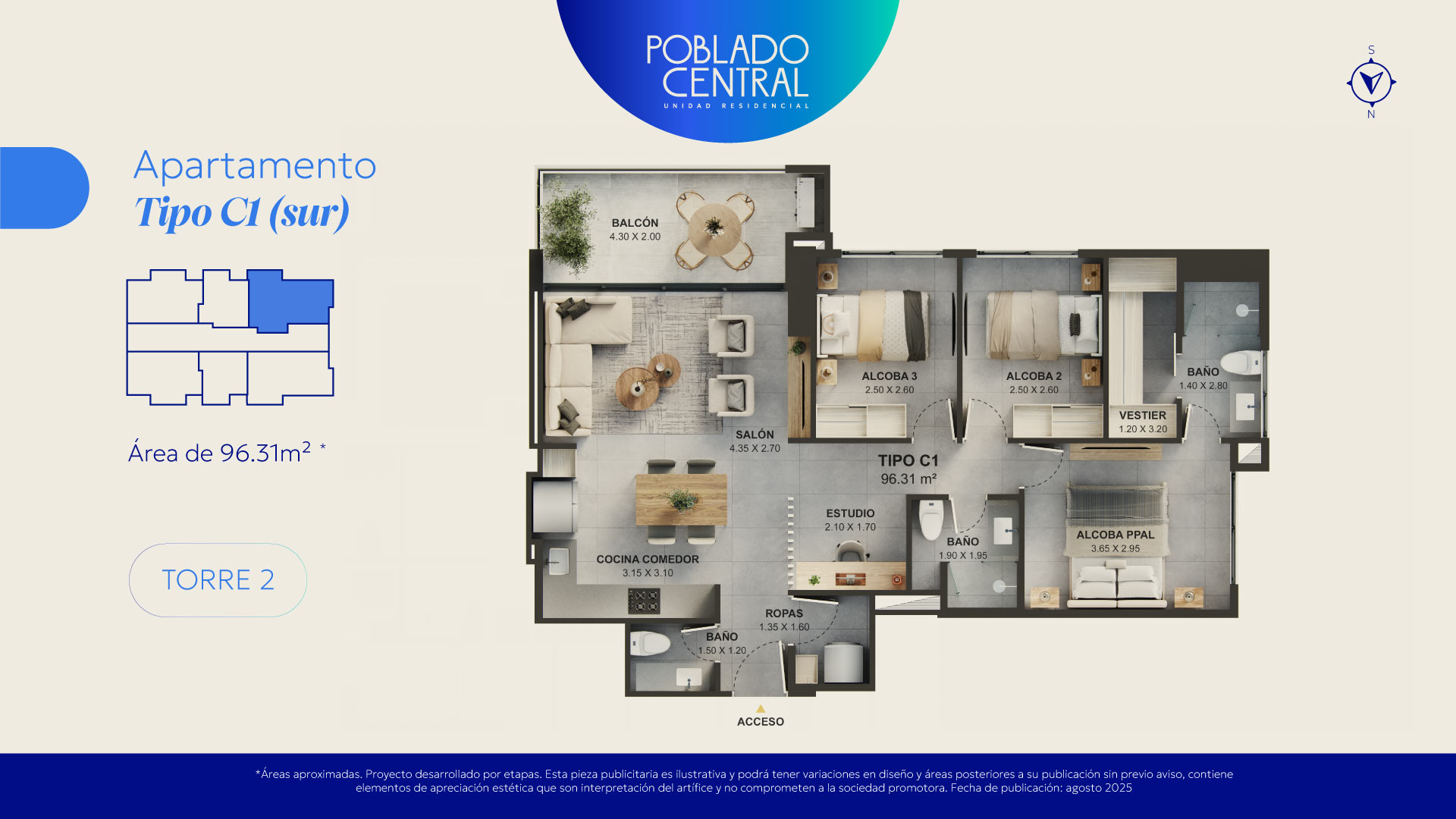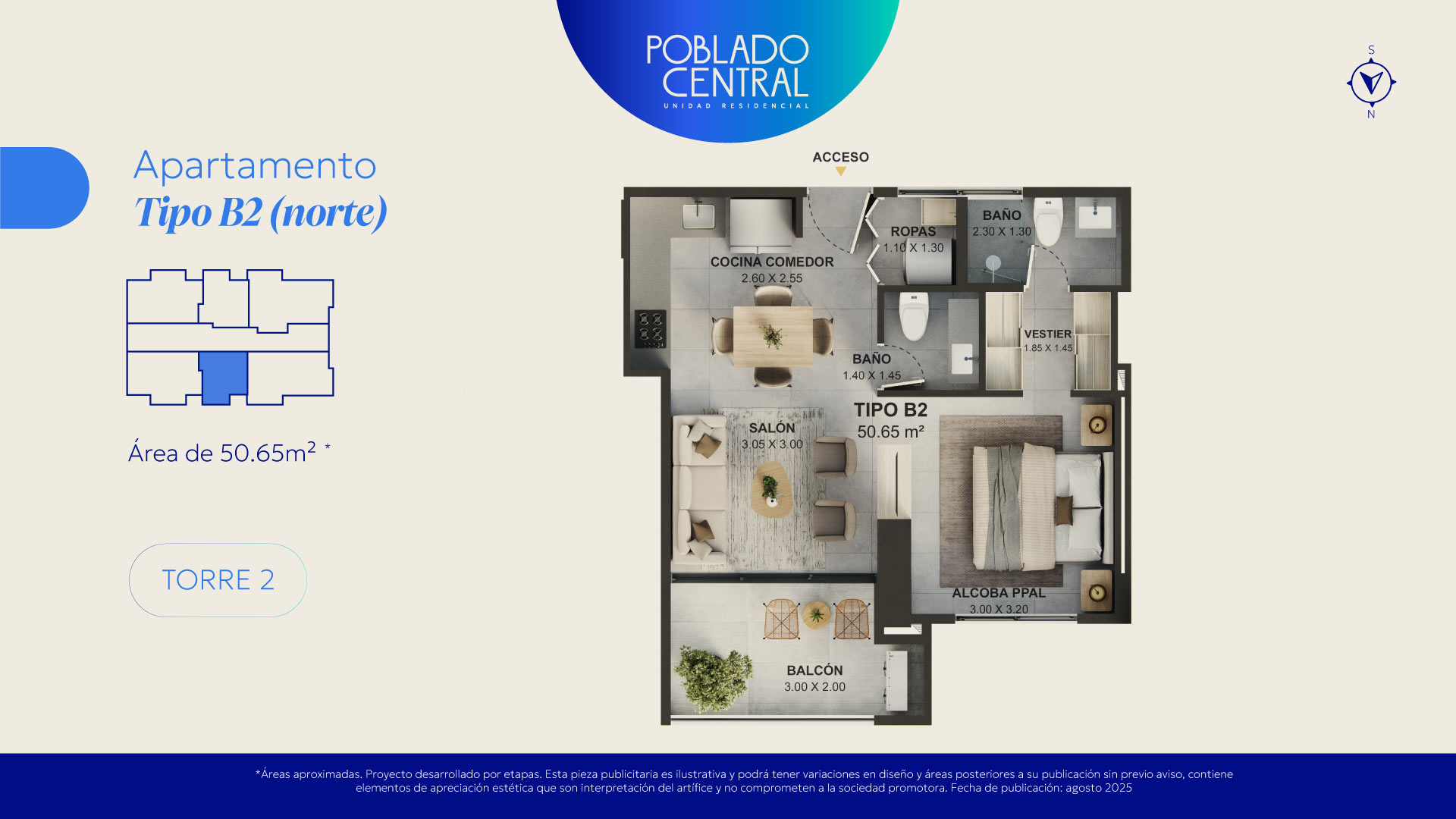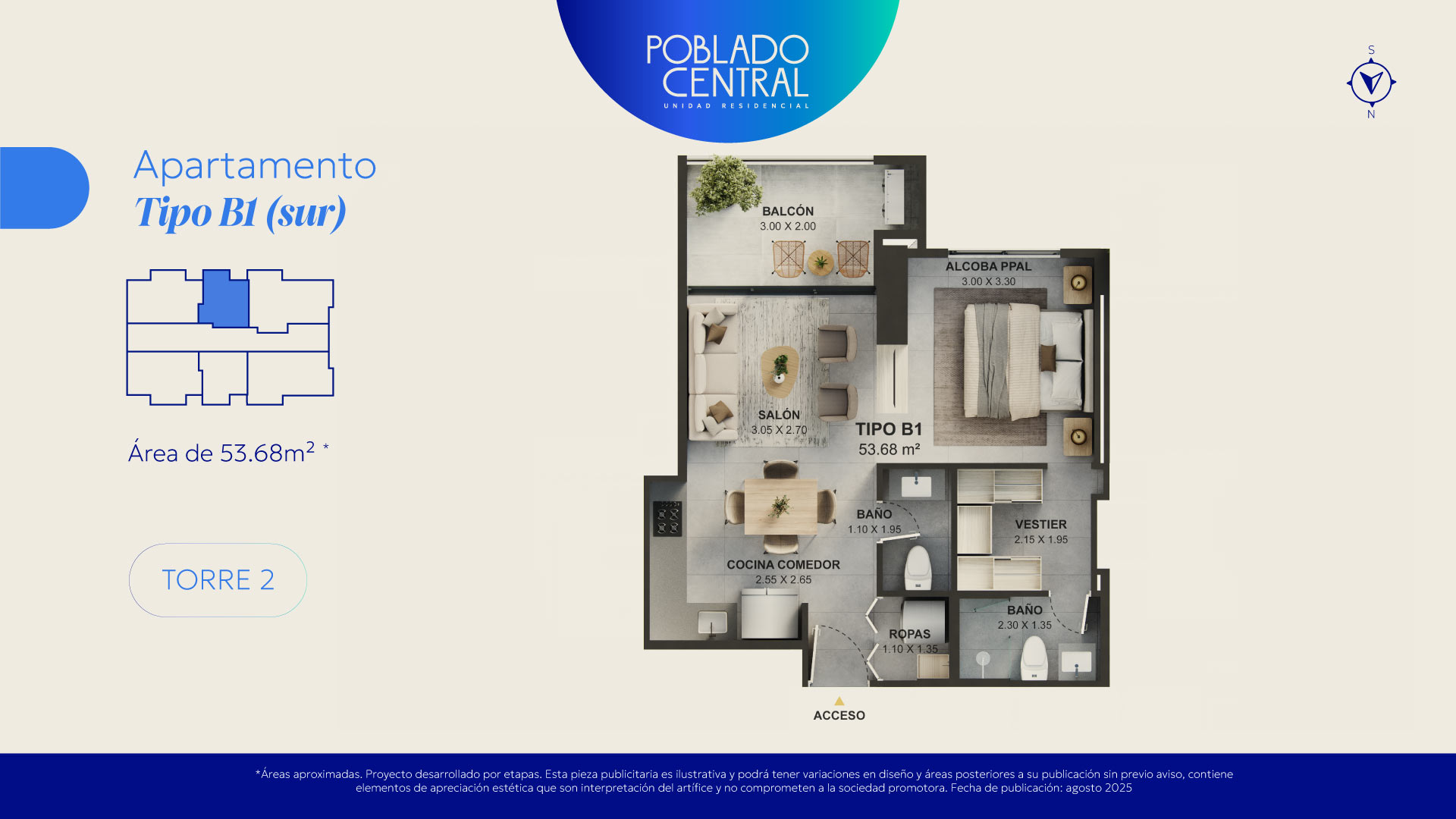 Vivir en Poblado Central significa tener todo a la mano: centros comerciales, universidades, zonas de entretenimiento, restaurantes y vías principales que garantizan facilidad de movilidad y alta valorización.
