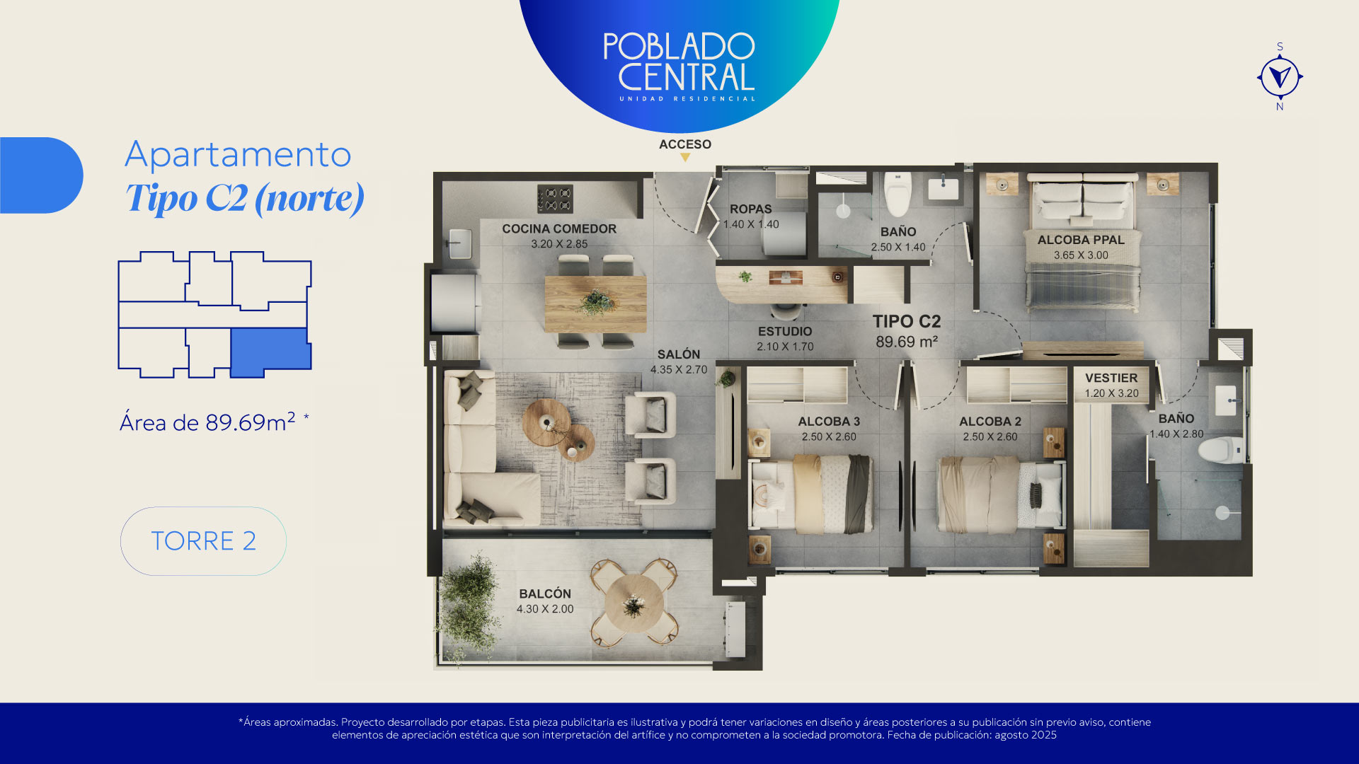 Este proyecto ofrece apartamentos con 1, 2 y 3 alcobas, ideales para quienes buscan un espacio moderno en Medellín, ya sea para vivir o como oportunidad de inversión en una de las zonas de mayor desarrollo y valorización de la ciudad.