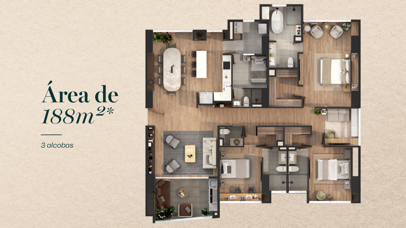 Área total: 188 m2 *