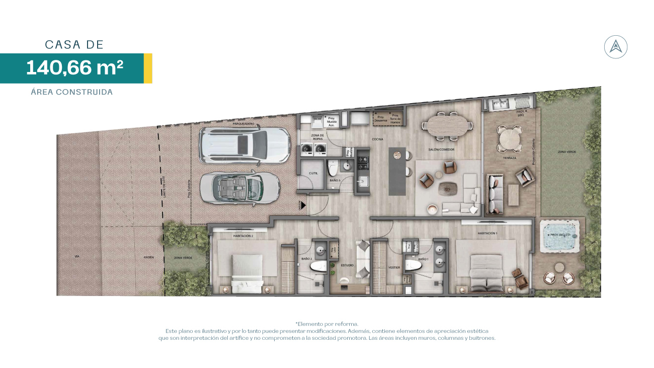 *Las áreas y precios publicados en el sitio web son estimados y podrán estar sujetos a modificaciones, cualquier información debe ser validada con la sala de negocios. El área y las características definitivas del inmueble serán aquellas que consten en la escritura pública de transferencia.