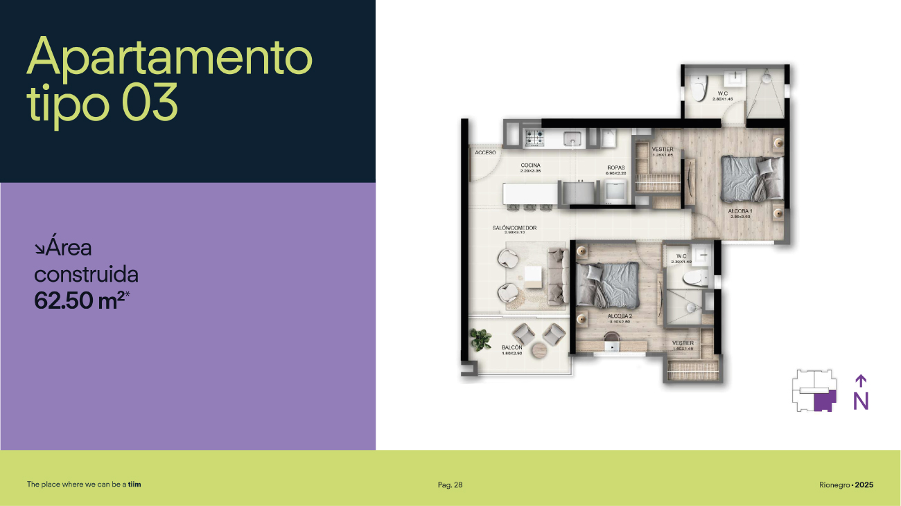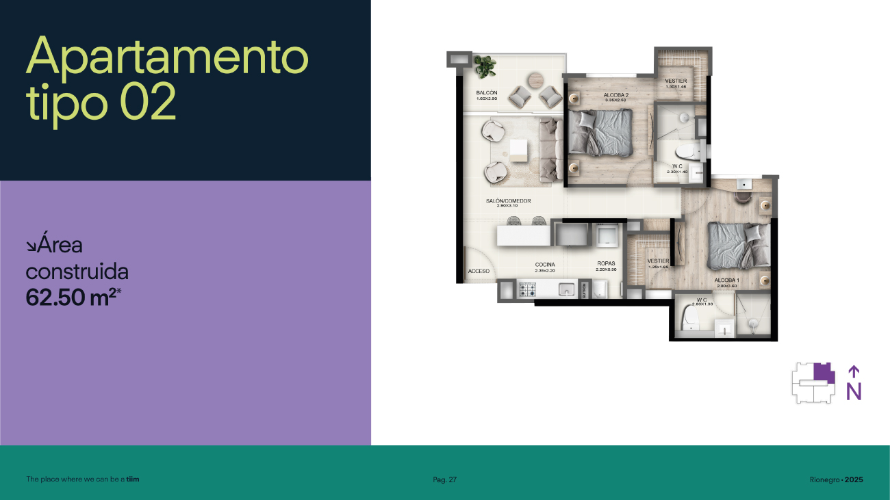 Área total: 62.5 m2 *